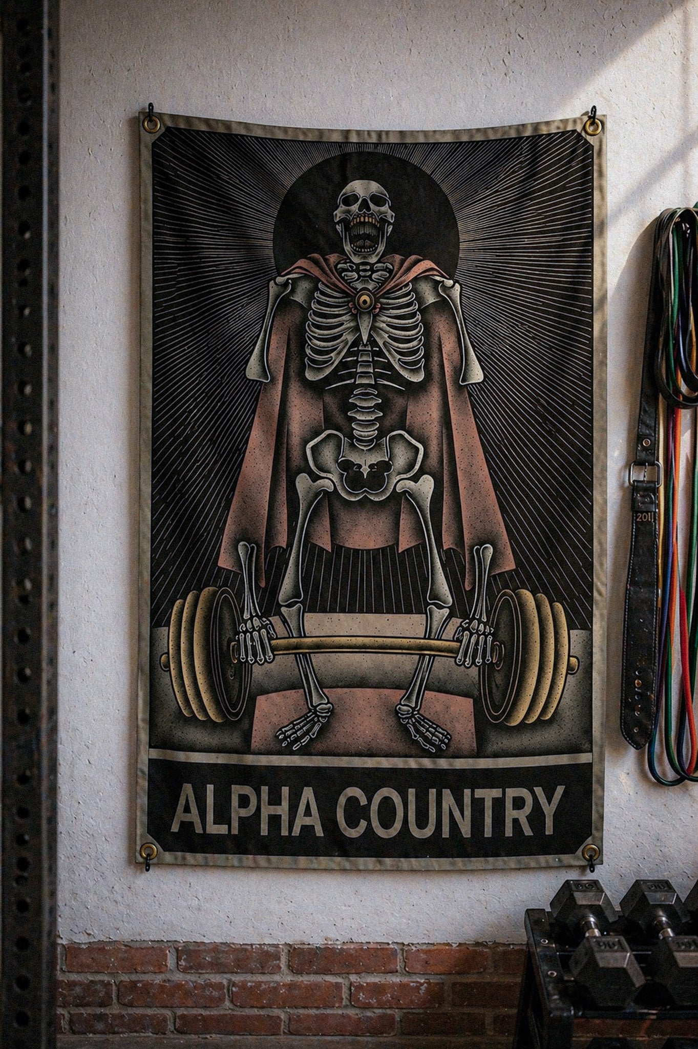 Printed on 3'x5' flags, finished with grommets, ready to hang in the gym, garage, team room, or wherever you do the work.