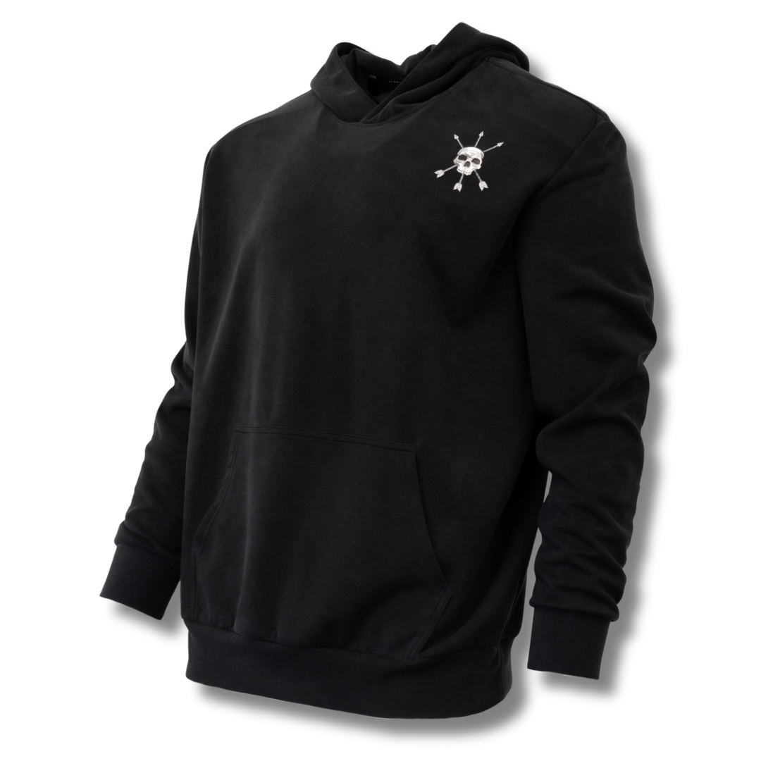 Clean hood design with a front kangaroo pocket for function without excess material or distraction.